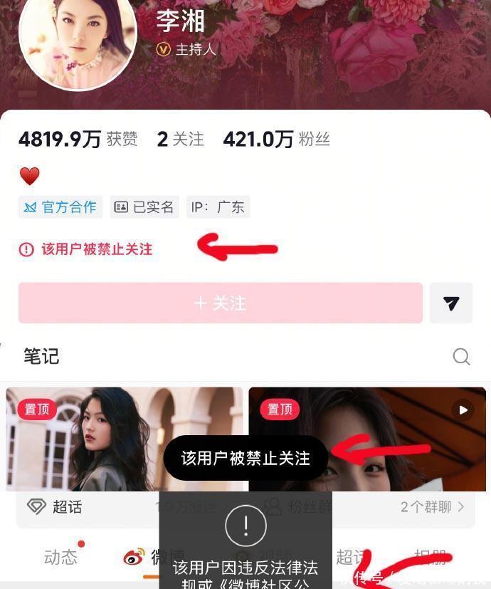自本月16日起,李湘的全平台账号都显示“禁止关注”。此外,其名下关联20家企业,其中14家已注销,仅6家企业续存。至于真正原因,目前暂无官方说明,而网上众说纷纭、猜测不断。比如,有网友猜测可能李湘税务问题、炫富、直播带货合规性等才导致被禁止关注。